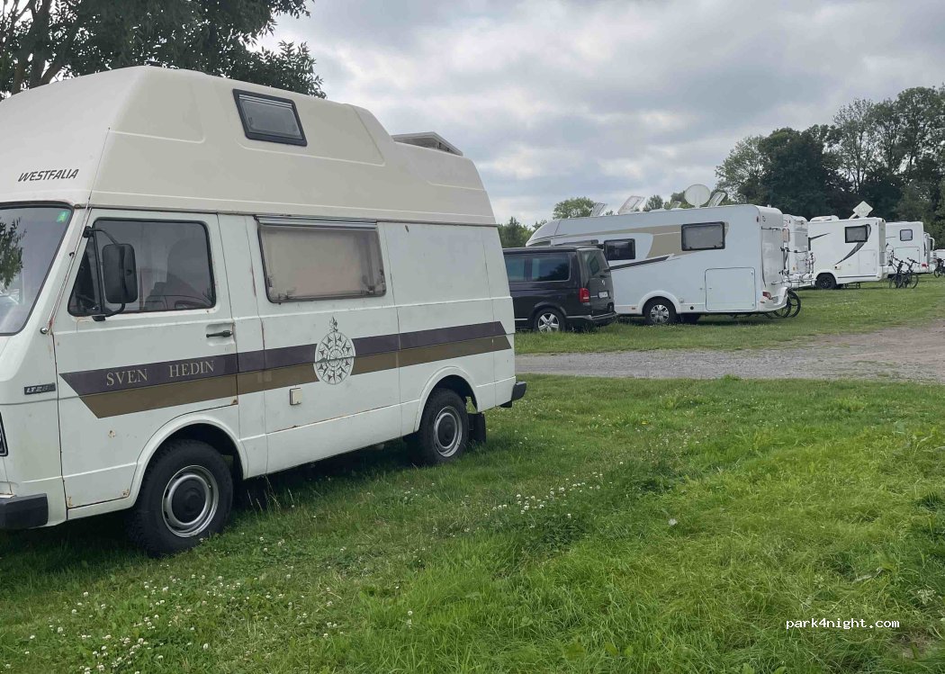 Große Wiese als Parkplatz. Legal und kostenlos. Ohne alles, aber es ist ein Platz für eine Nacht und somit absolut ausreichend. Viel Platz und man steht trotzdem nicht allein. Ganz nah ist der schöne Park und Hochseilgarten. Kinder und Hunde begeistert.
