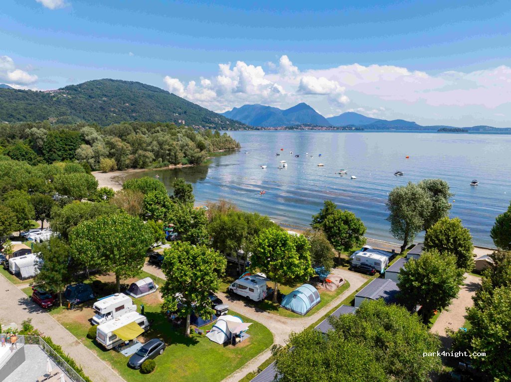 Camping très sympathique, sanitaire très propre, piscine agréable (bonnet obligatoire) plage avec une vue sympa mais pas mal d’algues idéalement situé pour visiter les îles Borromées
