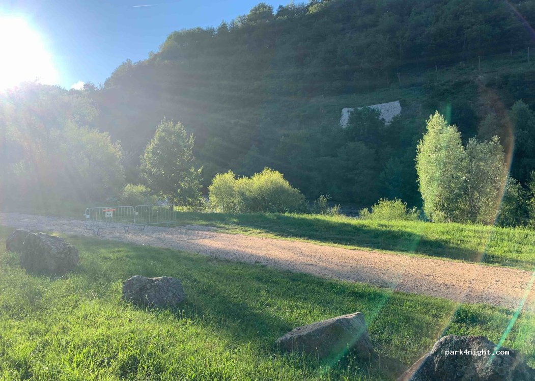 Endroit calme et propre. Pas de bruit, pas de moustique. Au bord de l’eau le long d’un chemin avec quelques passants mais on nous a rien dit. Près d’habitations qui avaient l’air fermé. Pas sûr d’être bienvenue cependant car quelques rochers positionnés pour ne pas se garer. On s’est mis près du centre hydroélectrique. Pour une nuit s’est parfait !