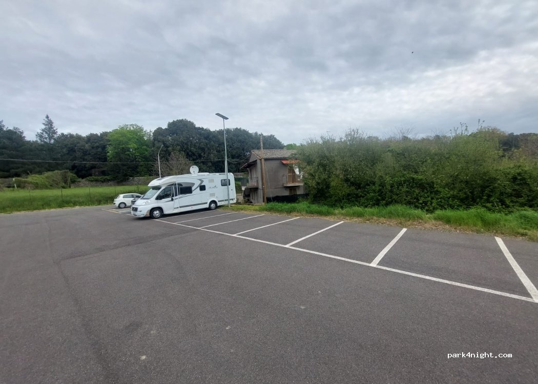 Nouveau parking public gratuit pour voitures et autocars. Il n'y a pas de panneaux explicites interdisant le stationnement des camping-cars. Il n'y a pas de services. Dans la même localité, il y a un autre parking avec eau et toilettes.