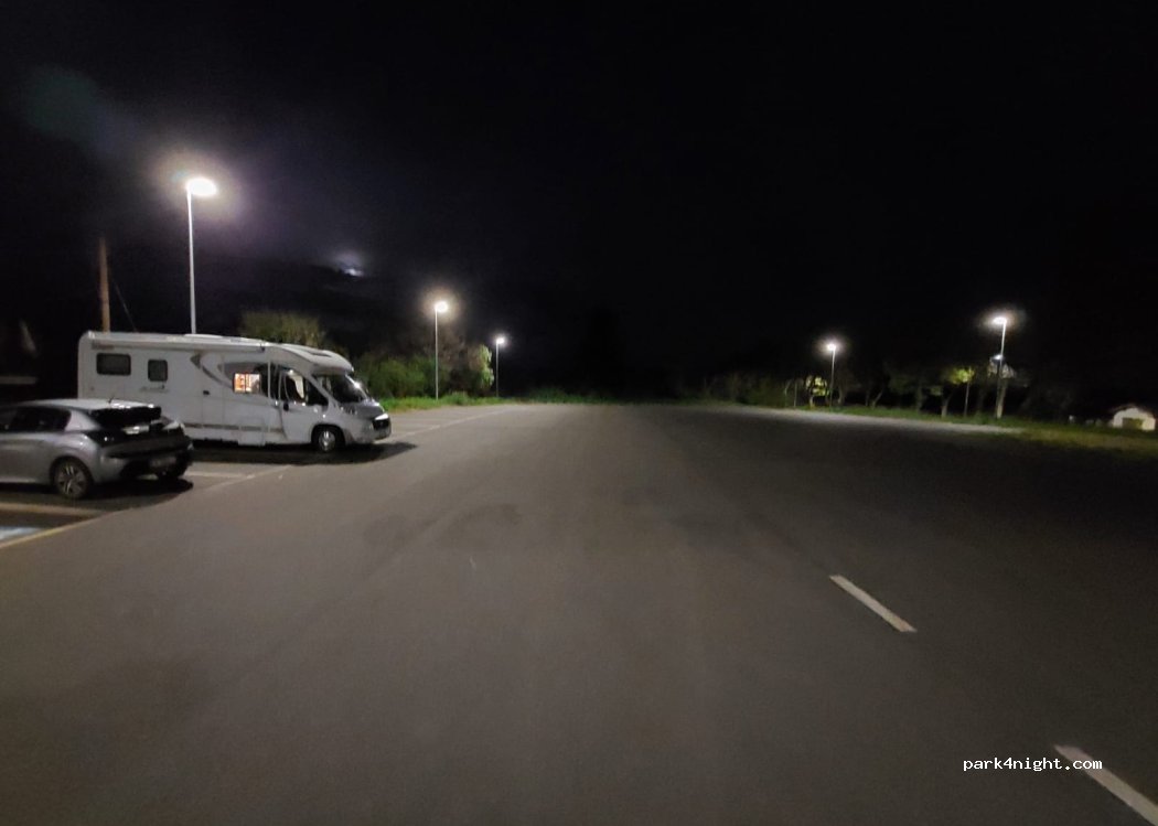 Parcheggio gratuito grandissimo, in alcuni punti quasi perfettamente pianeggiante, asfalto nuovo , i parcheggi sono lunghi ed oltretutto c'è ulteriore spazio sui bordi per lo sbalzo posteriore , ben illuminato dai lampioni tutta la notte. Abbiamo passato una notte ad Aprile , non abbiamo sentito anima viva , nessun rumore o macchina di passaggio. Tutto ottimo!