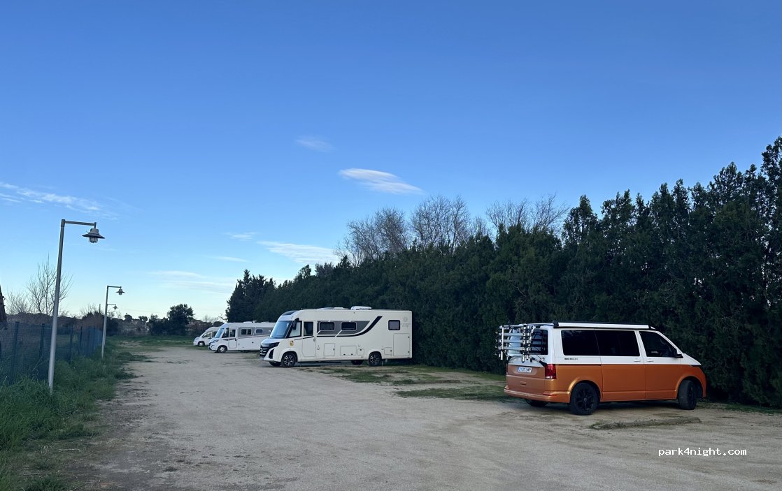 Nous sommes arrivés sur cette aire à 22h, il y avait encore de nombreuses places. Il y avait un match sur le terrain jouxtant l'aire ce qui a généré du bruit mais l'environnement reste calme malgré tout. Il n'y a effectivement pas d'accès aux services mais cet endroit a le mérite d'accueillir les camping-car gratuitement ce qui n'est pas courant dans le secteur. Merci à la ville.