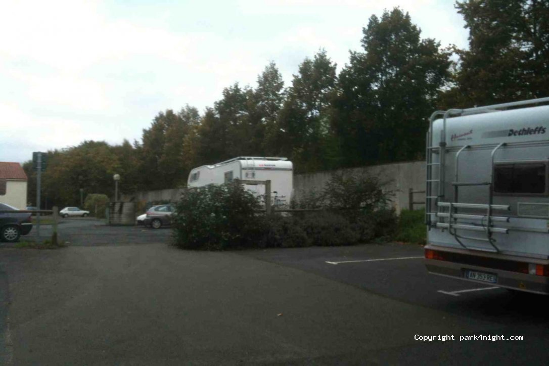 Parking étroit et en pente. Encombré par des engins et locaux de chantier en ce moment. A éviter. Borne de service difficile d'accès.