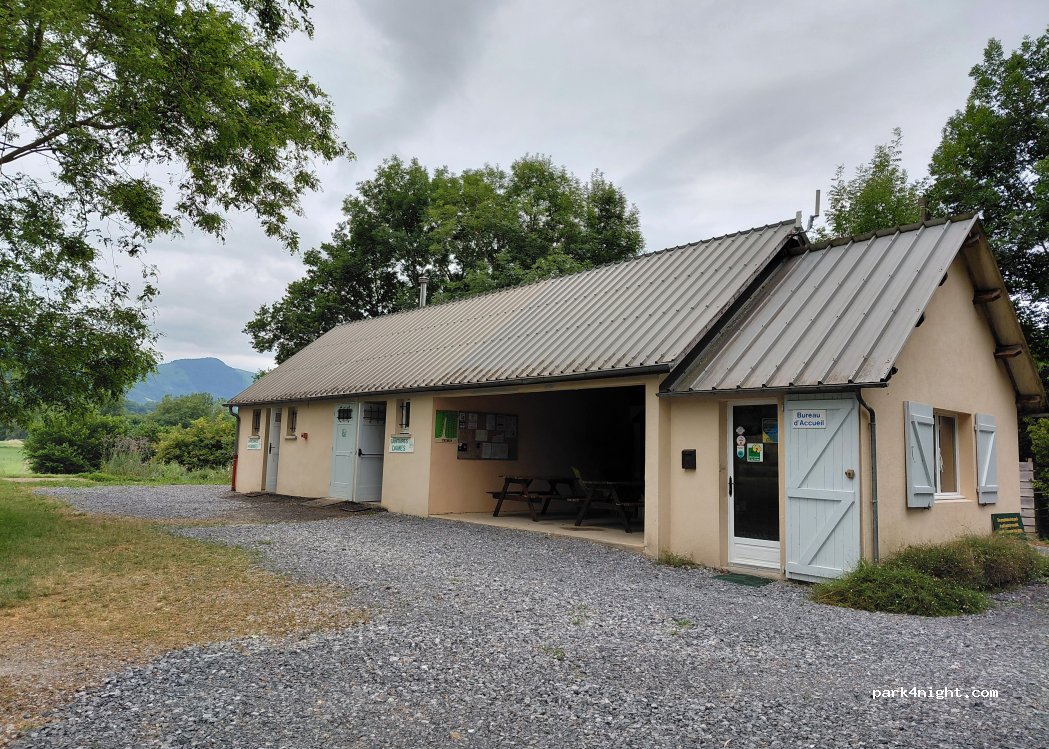 Très belle aire au milieu des arbres. Sanitaires propres avec papier toilette ! Douches chaudes, wifi, livres et jeux sous le préau, pain et croissants à commander la veille. Prix mini, accueil sympa… que demander de plus !