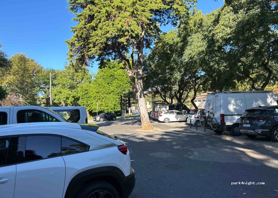Parking gratuito de 20:00h a 9:00 ideal para pernoctar. Una plaza pegada a un árbol así se puede aparcar una AC larga. Cerca de playa y centro ( 8 minutos andando ). Justo al lado hay un hermoso parque que si se viaja con niños no hay que dejar de visitar, lo malo es que en ese parque hay gallos, ... y ya se sabe que los gallos madrugan demasiado.