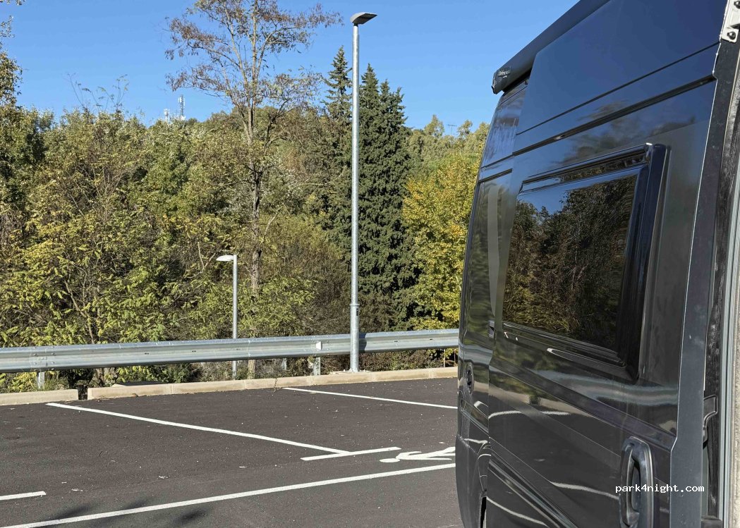 Normaler kostenfreier Parkplatz für PKW. Eng und steil. Zumindest unter der Woche zugeparkt, keine Chance auf Platz. Maximal für Bullis und kleine Vans. Auch Zufahrt steil. Nicht zu empfehlen.