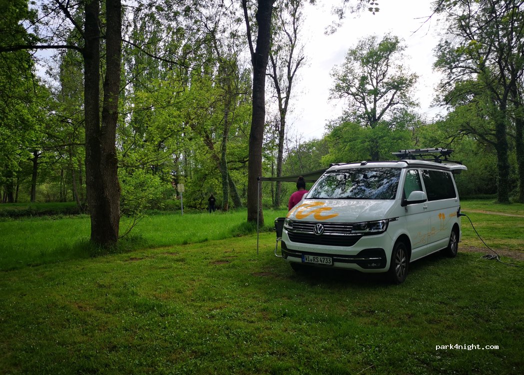 Herrlicher Platz - nur grün drumherum- ganze 7 Wohnmobile und das in der Hauptsaison… Strom, Frischwasser, Grauwasserentsorgung- alles bestens! Gute Nähe zu verschiedenen Schlössern.