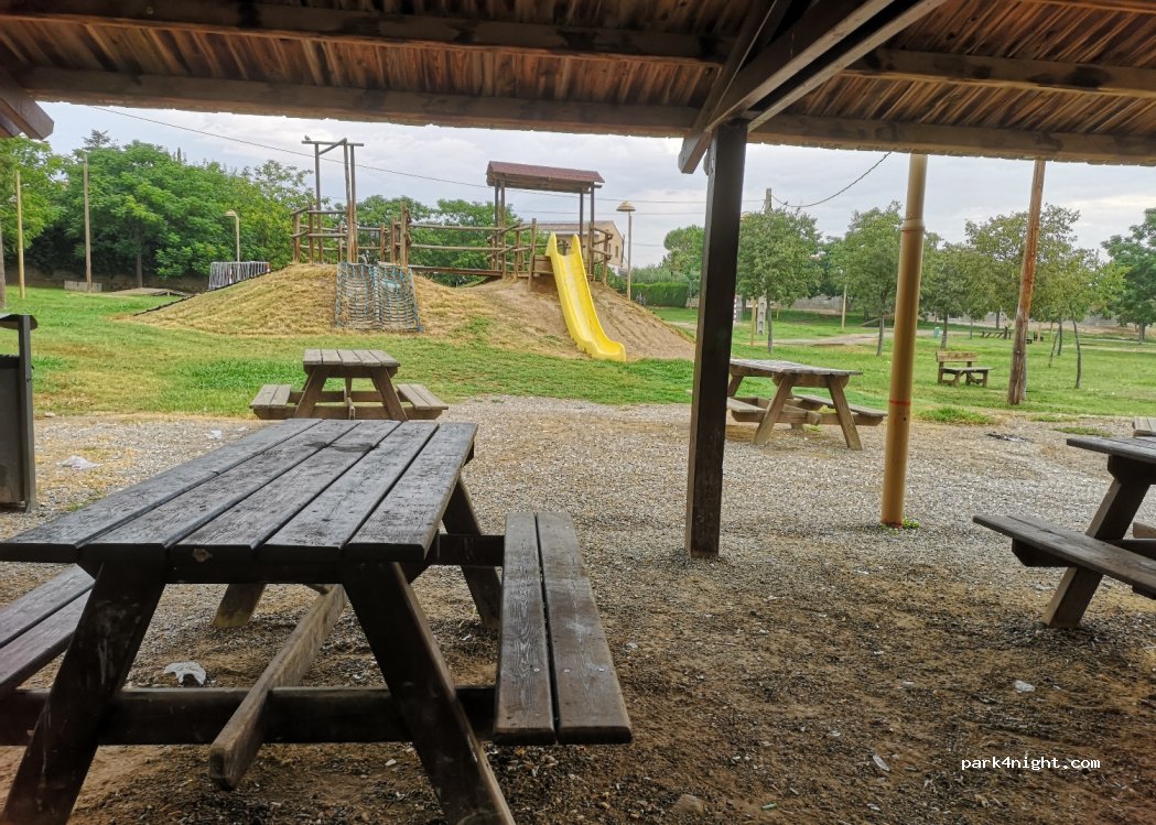 Zona de picnic amb 4 taules a l'ombra i 6 sense. Parc infantil amb 2 tobogans i gronxadors. Estava molt brut, suposo que no l'havien netejat després de Sant Joan.