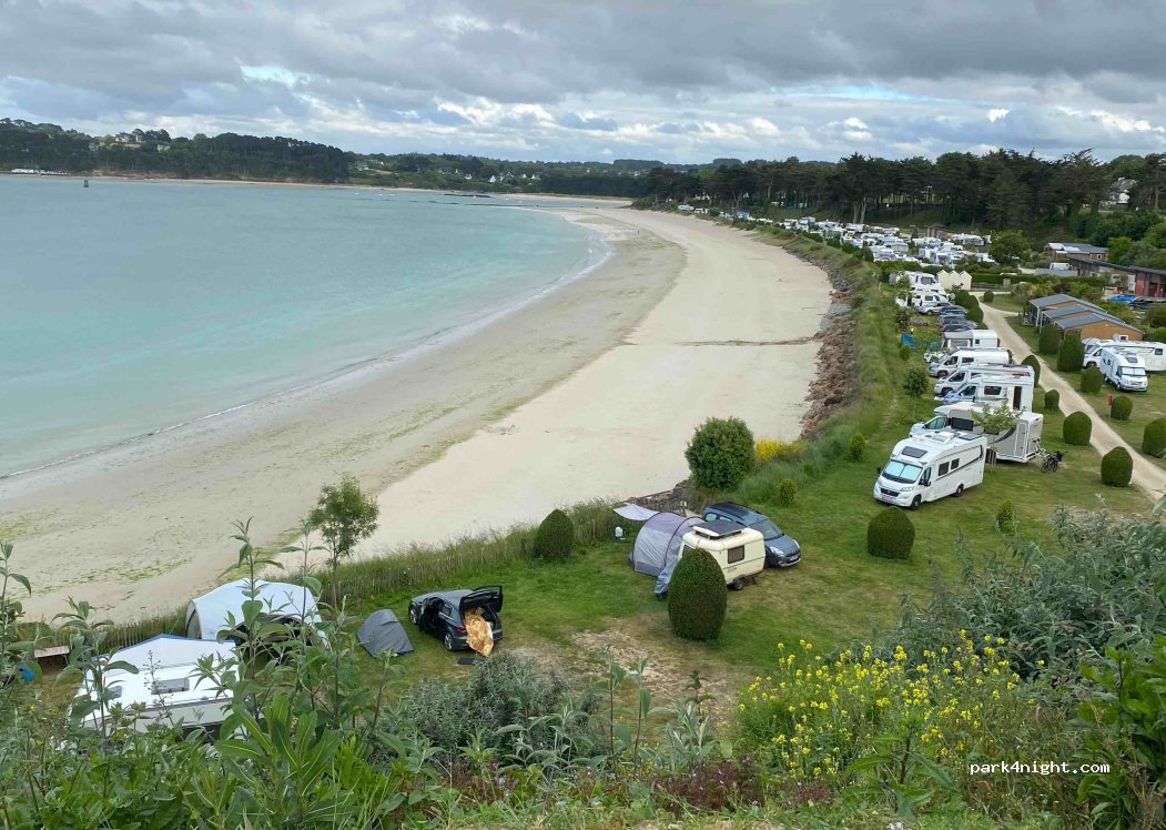 Toplage direkt am Meer. Langgezogene Anlage. Da nur ein Sanitärgebäude geöffnet ist, sind von den hintersten Plätzen weite Wege zu gehen. Mit dem Fahrrad kein Problem. Entsorgung vorne beim Eingang . Aussicht (1. Reihe) sehr schön. Einkaufen 15‘ mit dem Velo Plestin-les-Grèvesin.