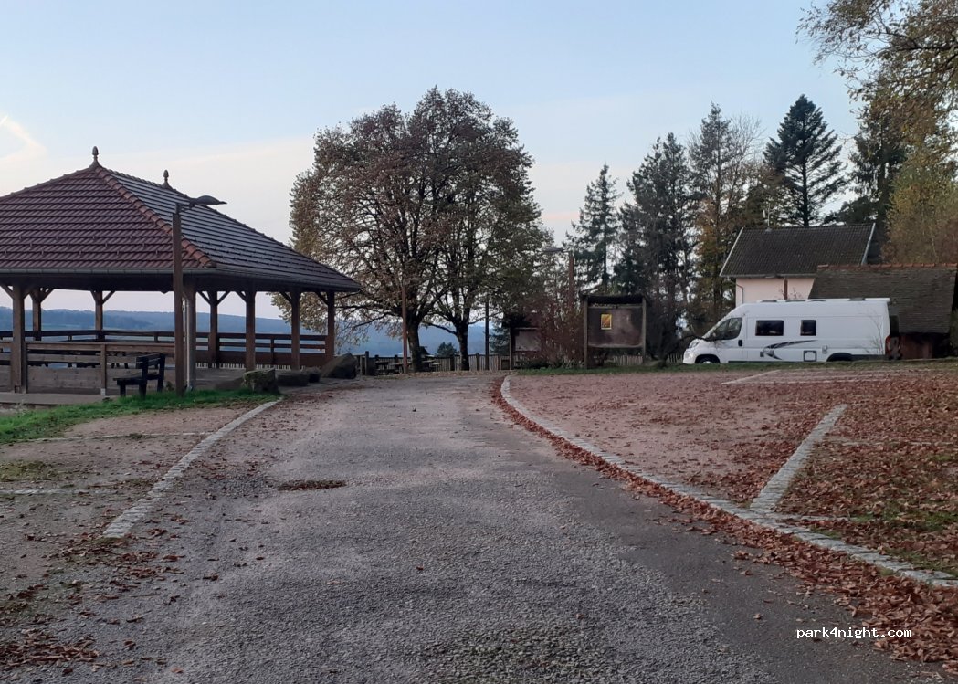 Une nuit passée sur ce spot. Le site est vaste, multiples emplacements possibles, plutôt plat. Accès rapide en quittant la route, une courte montée qui vous donne accès à la plate-forme. Peu de circulation la nuit sur la route en contrebas, c'est très calme. Au petit matin, lever de soleil, juste devant vous, le soleil illumine toute la vallée du Val d'Ajol, beau point de vue. Merci à la commune.