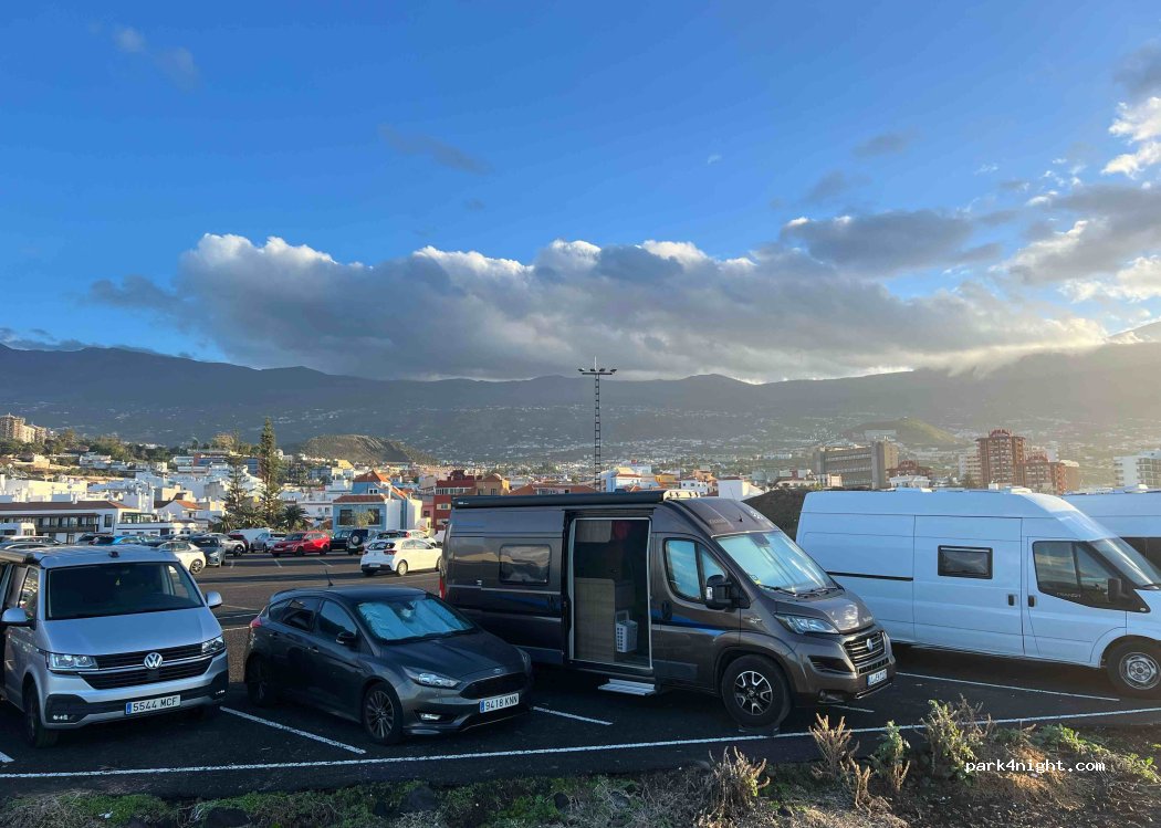 Grand parking bondé, en bord de mer, très moche mais à côté du centre de Puerto Cruz. Facile donc pour visiter la ville mais pas très agréable pour y passer la nuit.