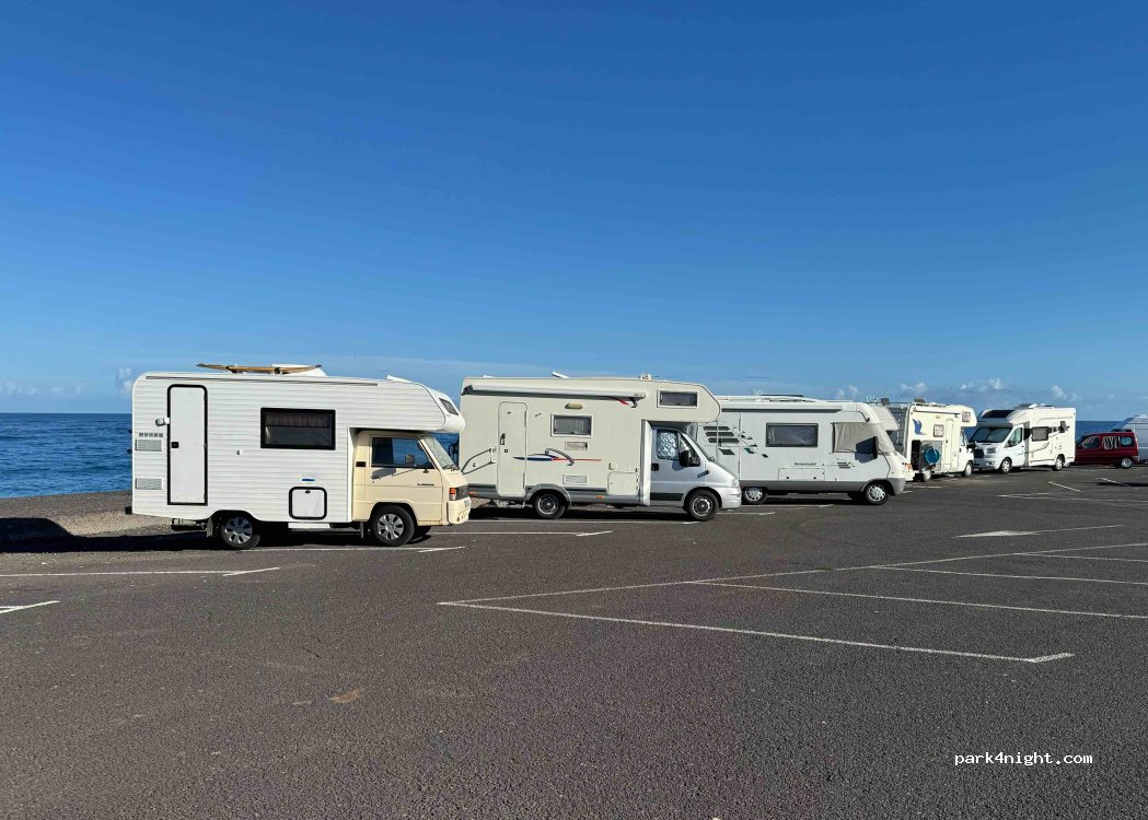 Un grand parking accessible, nous y sommes allées vers 17h, des places disponibles au fond avec d’autres vans. Super spot pour une nuit, avec bruit des vagues. C’était assez calme. Proche de la ville. En grande saison attention, les places sont rares.