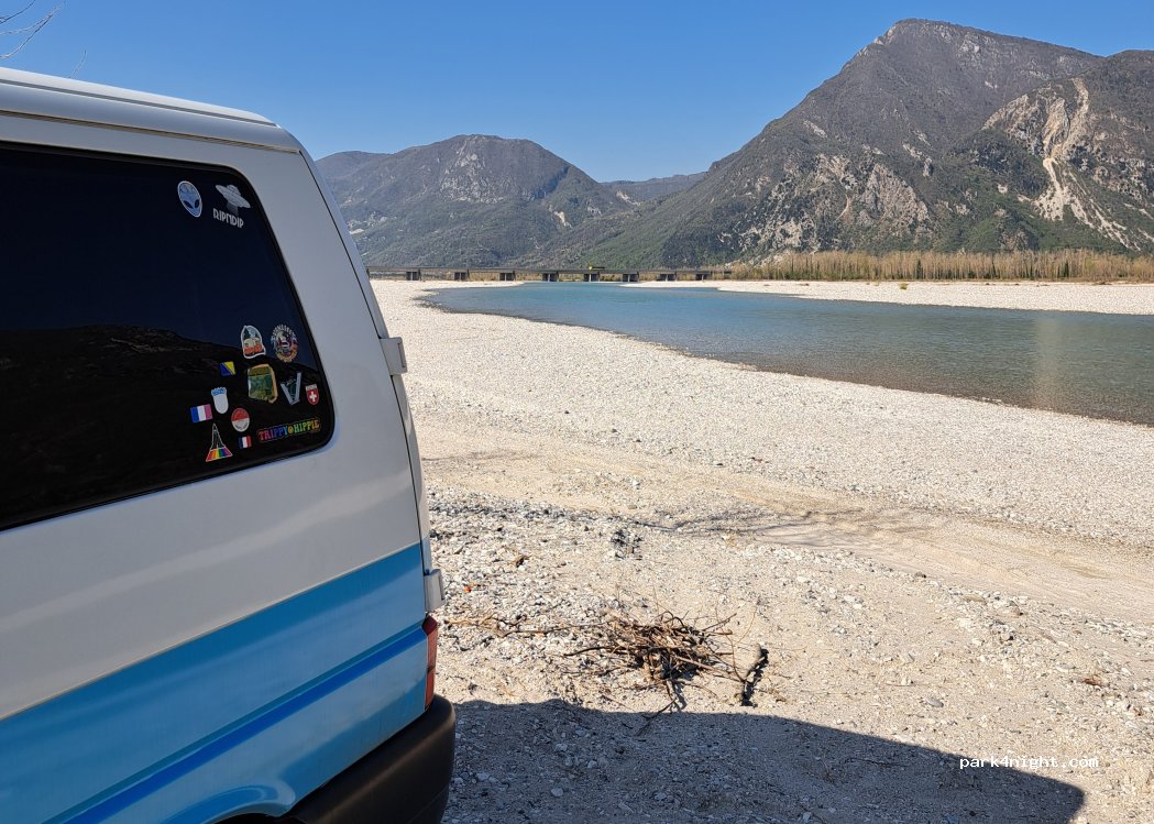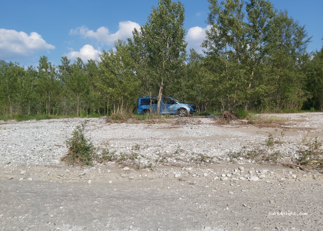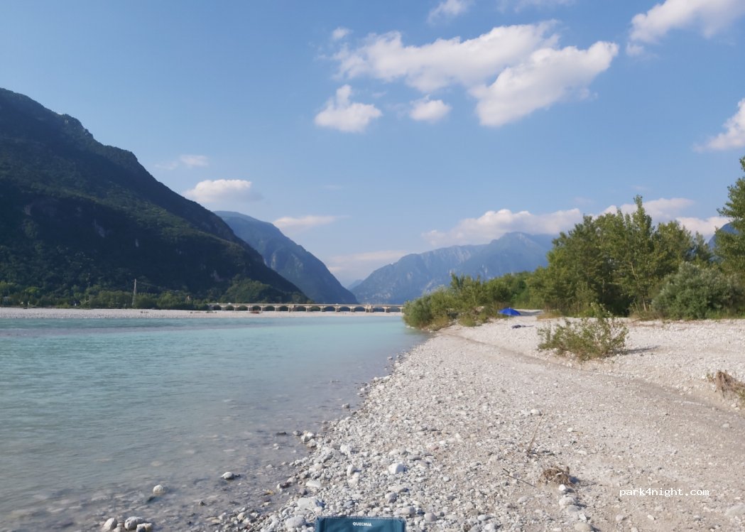 kann mich meiner Vorgängerin nicht anschließen. Es gibt mehrere Plätze am Flußbett, auf das man theoretisch auch drauf fahren kann. Man hat einen super blick auf den Tagliamento und das Gebirge. Die Zufahrt hat viele Schlaglöcher aber ist auf jeden Fall machbar ohne das der Camper schaden nimmt. Wir sind mit einem 6m Kastenwagen unterwegs.