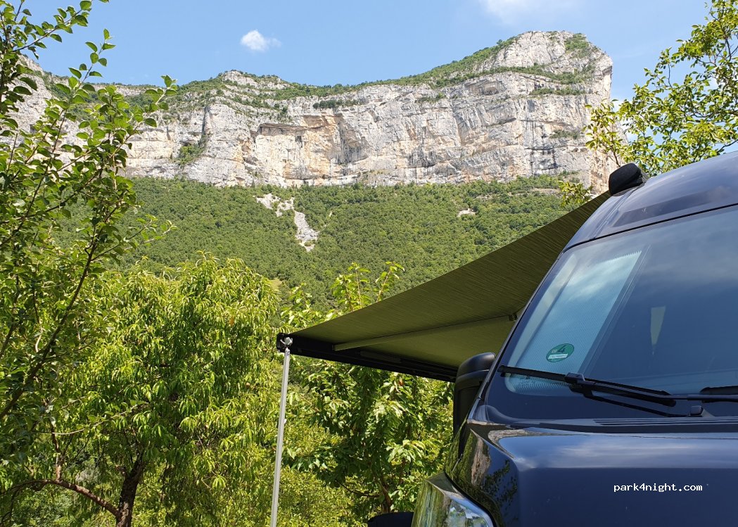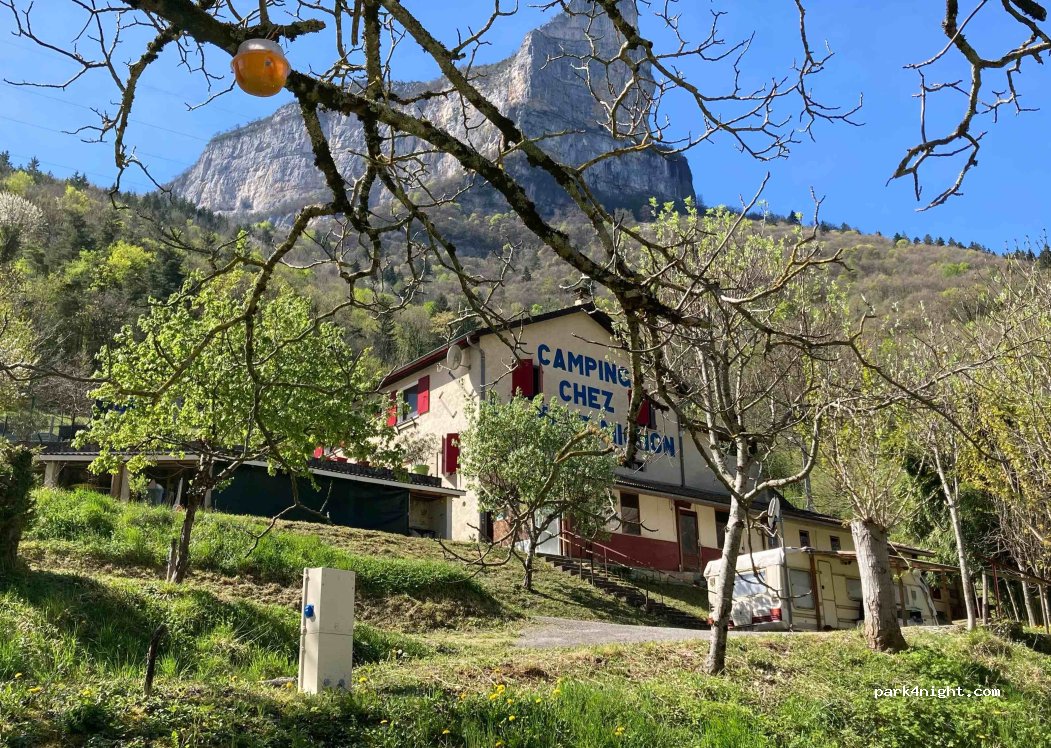 Mother Michon's campsite, a little rustic but very well equipped (loan of equipment for campers: chairs, tables, relax, BBQ), many drinking water points, sinks, clean toilets and hot water at all hours, washing machine, …), Located just before the gorges of the Bourne Really welcoming campsite, beautiful pitches for some motorhome, everything is on the terrace. The owners are very very friendly. 500m below, “Le martinet” snack bar and grocery store, fresh bread and other quality products.