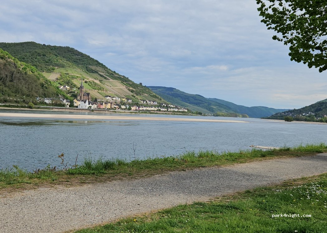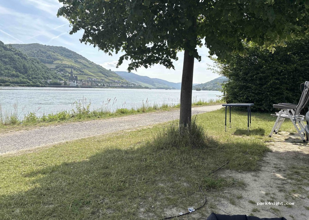 Schöner Stellplatz mit relativ schmalen Parkbuchten neben Campingplatz. Infrastruktur wie Duschen, Toiletten etc. nutzbar. Restaurant mit netter Aussicht und schmackhaften Gerichten, übersichtliche Auswahl. Allerdings ist es, wie auch sonst im Mittelrheintal, durch den Schienen- und Straßenverkehr ziemlich laut. Dafür kann der Stellplatz aber nichts...