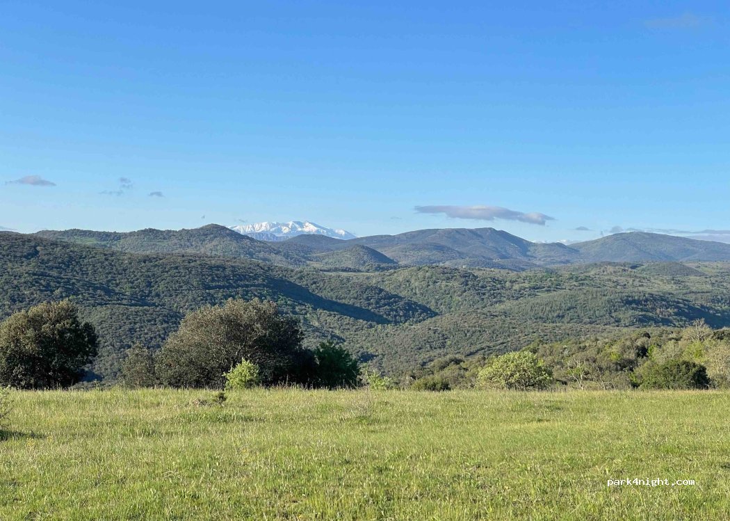 Parking en hauteur avec vue magnifique sur les Pyrénées, pas loin du château de Termes.
