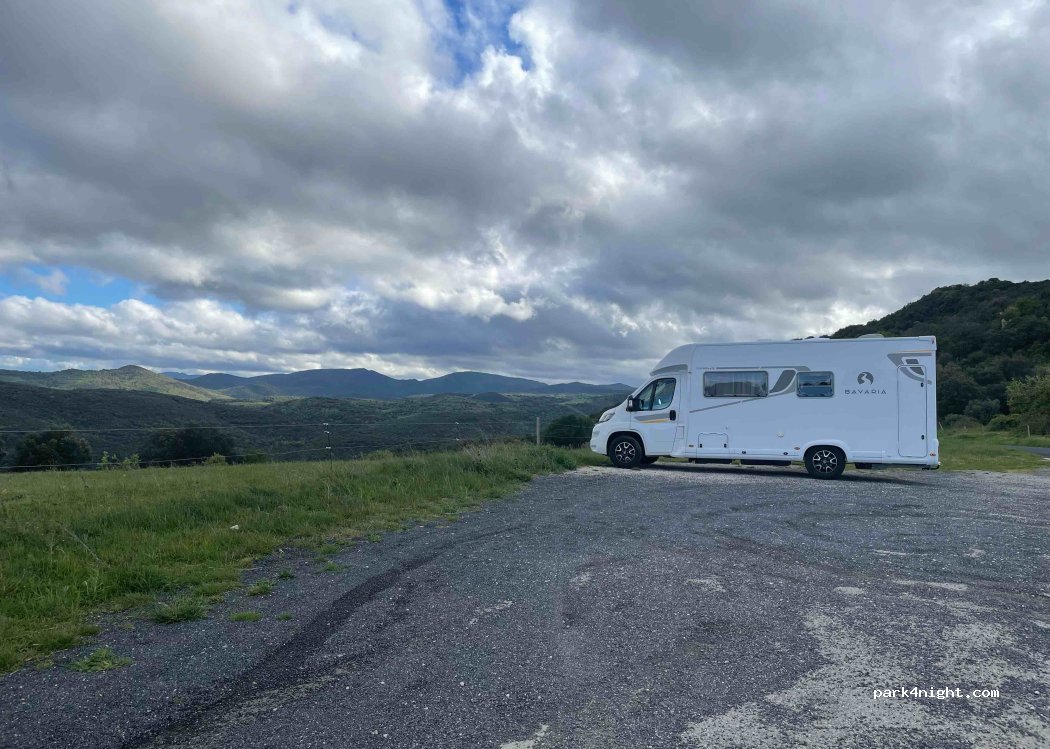 Idéal pour ceux qui veulent avant tout un panorama magnifique ! En bord de route mais très calme en journée et parfaitement tranquille la nuit. Le parking est plat. J'ai eu la chance d'une nuit sans vent mais il doit être très exposé. Ne pas se fier aux vues satellites, il y a de la végétation tout autour.