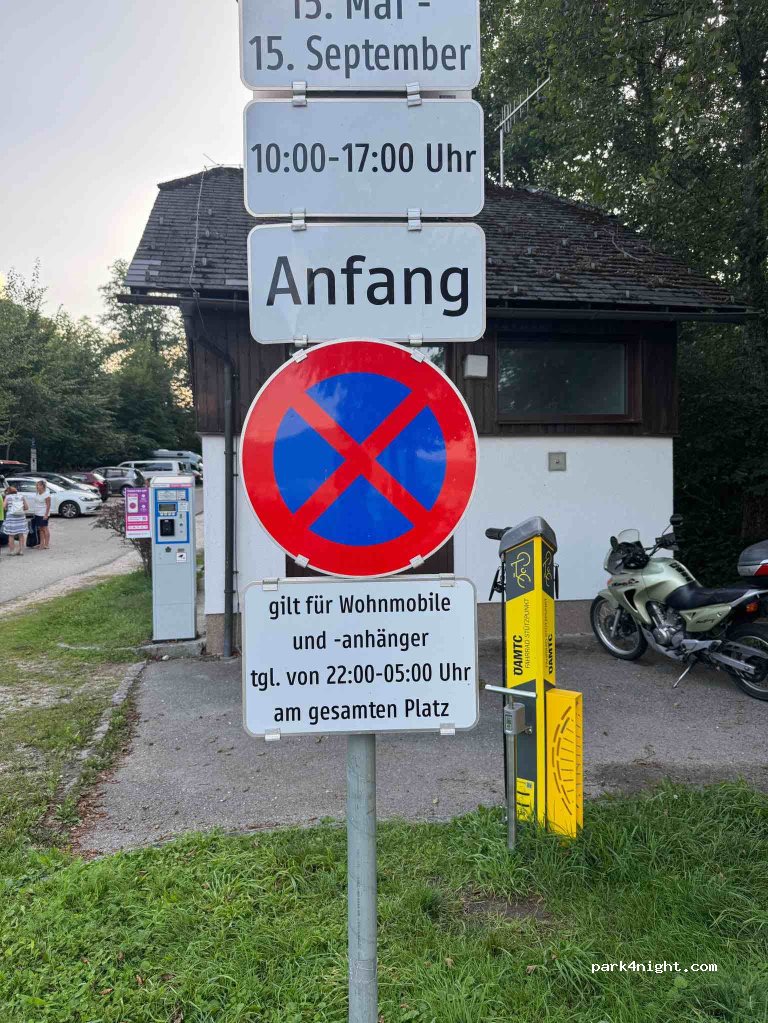Nice parking spot next to the lake, although there is some noise from the road. Parking costs are 4 Euro between 10 and 17 o'clock. No fee afterwards. WC has been open during the night. In the evening (Saturday), quite a few teenagers have been at the lake listening to music.