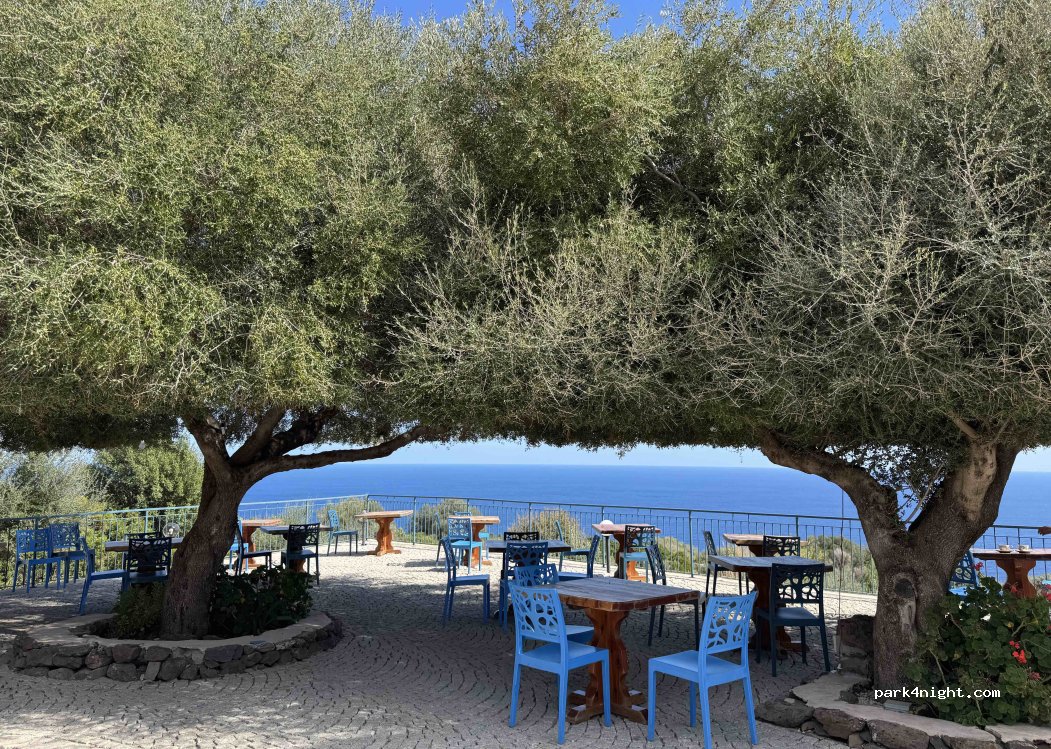 Toller Stellplatz mit sauberen Sanitäranlagen hoch über der Küste. Grandiose Aussicht. Ausgezeichnetes sardisches Abendessen mit sehr gutem sardischem Wein. Genuss pur! Abendessen 40 €, Kinder 20 €. Absolute Empfehlung! Bei Abendessen Übernachtung gratis.