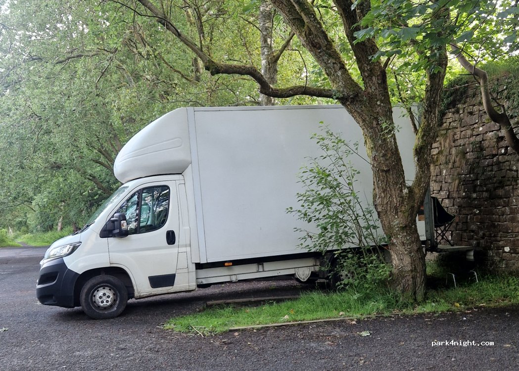 Very peaceful nights sleep, like like last reviewer said there are low hanging branches but it was fine for us in our 7m motorhome with overcab. No one else around and we did an amazing walk along the river to the viaduct. No bins or facilities but great for a night.