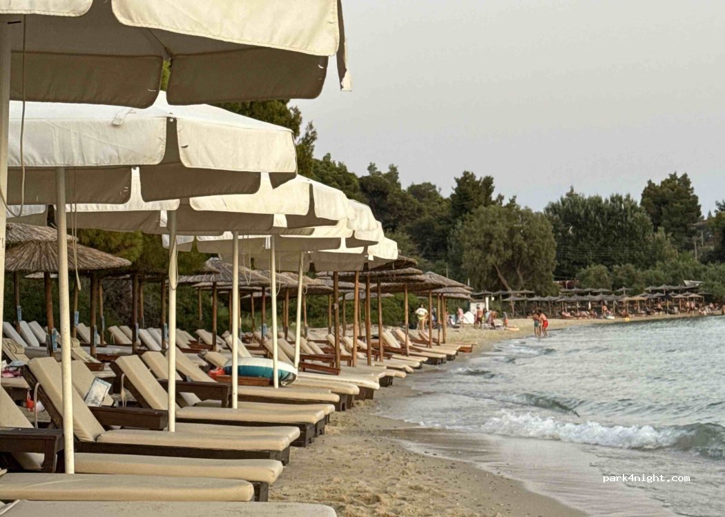 Super beach, friendly bar staff, reasonable rental prices for sun lounges. Just do not arrive during the peak hours, because the roads are utterly blocked with parked cars arriving after 8 pm or so and leaving before 10 am are the best way to ensure an easy entrance and exit from the road (our van is 2.05m wide and 6.3m long and we had issues with cars parked on both sides of the road).