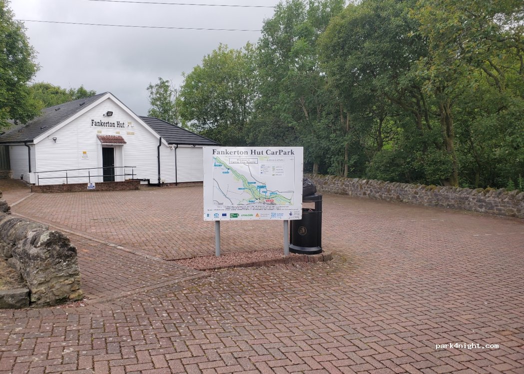 Un parking à côté d'une petite rue animée. Aucune signalisation interdisant de dormir. Promeneurs et propriétaires de chiens dans l'après-midi, très calme la nuit. Juste en dessous se trouve la réserve faunique de Carron Glen, idéale pour les petites promenades.