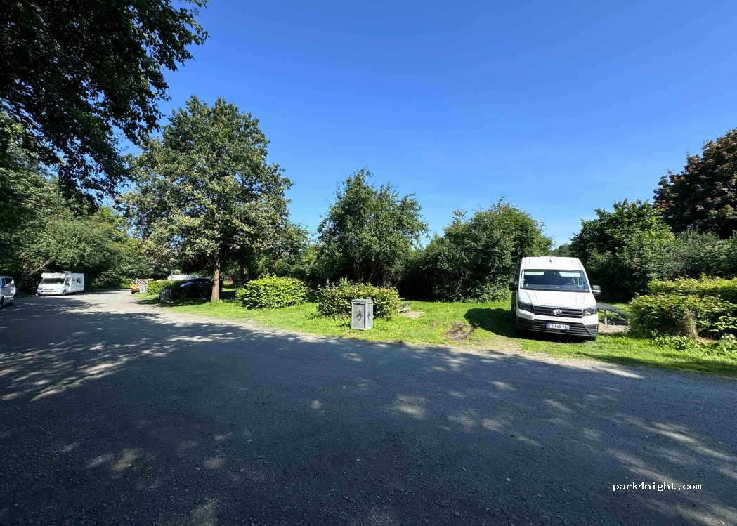 Emplacements très sympathique pour les véhicules aménagés, dans la végétation, tables, poubelles, petit lac à côté. Nous y avons passé une nuit c était top, ça change des aires d autoroute traditionnelles. Merci.