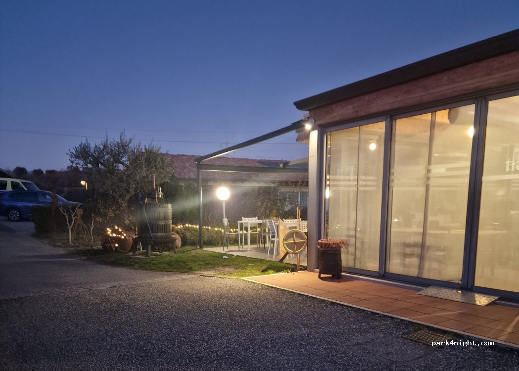 Area sosta veramente bella e ben curata. Proprietari super gentili e simpatici Piazzole spaziose e delimitate. 35€ a notte/equipaggio. Periodo estivo ci son anche piscine. Piccola spa con jacuzzi. In estate al venerdì cena italiana con verdure, grigliata di carne e vino!