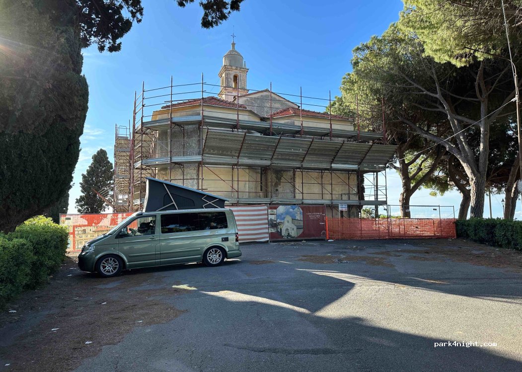 Netter Platz mit einem tollen Blick aufs Meer nach Sanremo und Taggia. Die WCs waren verschlossen, die Kirche wird renoviert, aber es sieht nach Stillstand aus. Für Vans und auch Wohnmobile geeignet. Die Zufahrt nach oben ist typisch italienisch eng aber problemlos möglich. Am Abend hatten wir kurz Gäste mit Rollern, die uns aber in Ruhe gelassen haben.