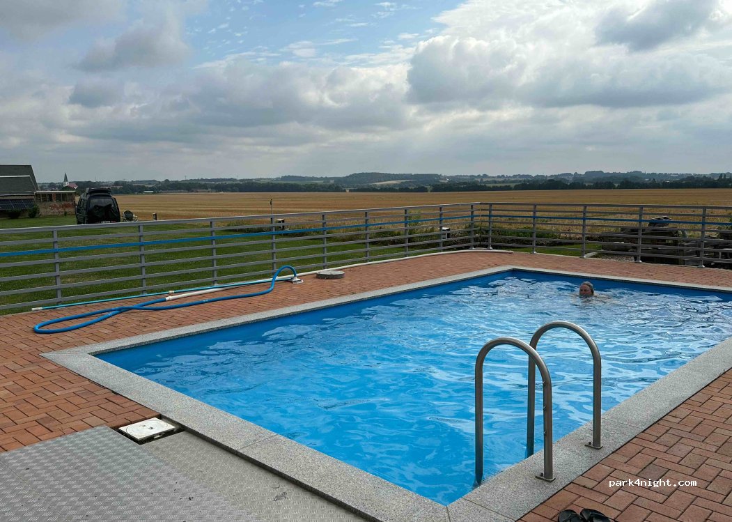 Quiet place on the edge of the field for 5 campers / trailer and enough space for tents. In addition to shower, toilet, washing machine, there is a pool. Electricity and much more is available. If you have questions just call.