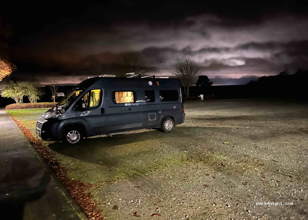 Toller Platz, nachts sehr ruhig. Tagsüber reger Verkehr durch ziemlich flott fahrende Besucher der Halle oder Leute, die hier ihre Anhänger parken und abholen. Wir haben keinen Gully fürs Grauwasser gefunden und entleeren dann halt woanders. Schwarzwasser aber kein Problem. Danke an die Gemeinde für diesen tollen kostenlosen Platz!