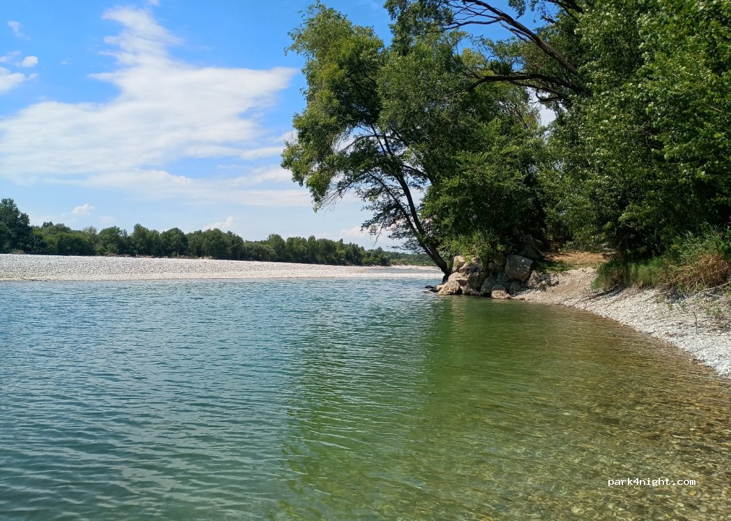 Ombragé, le spot est très agréable. La rivière est presque asséchée, l'eau est stagnante. Il y a une fontaine à l'entrée du parking. Présence d'un parcours sportif (barre de traction, dips, etc.). Pas trop de moustiques comparé au reste de l'Italie ! Nous sommes restés 2 nuits sans problèmes.