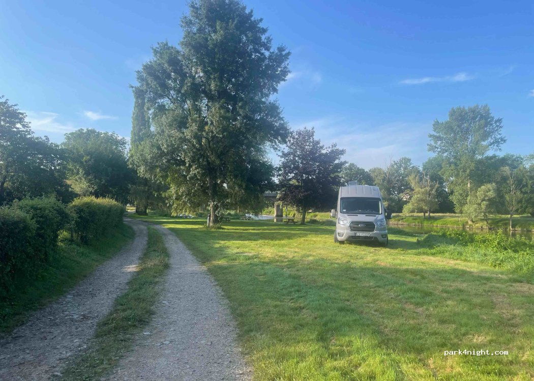 Superbe endroit, tres calme au bord de l’arroux. Nous y avons passé une fin d’après-midi et une nuit. Des poubelles sont à disposition, merci à la commune. Le lever de soleil est splendide