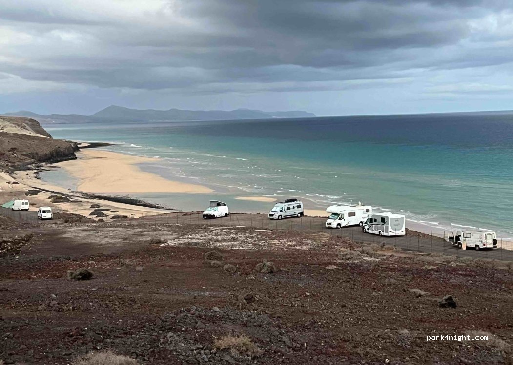 Un sitio espectacular. Nosotros hemos llegado con una caravana de más de 7 metros sin problema, pero no debes bajar por las calles Tierra Dorada. Continúa y baja por la calle Los Acantilados. El aparcamiento está expuesto al viento. Si hace viento es mejor pernoctar en sitios cercanos más protegidos.