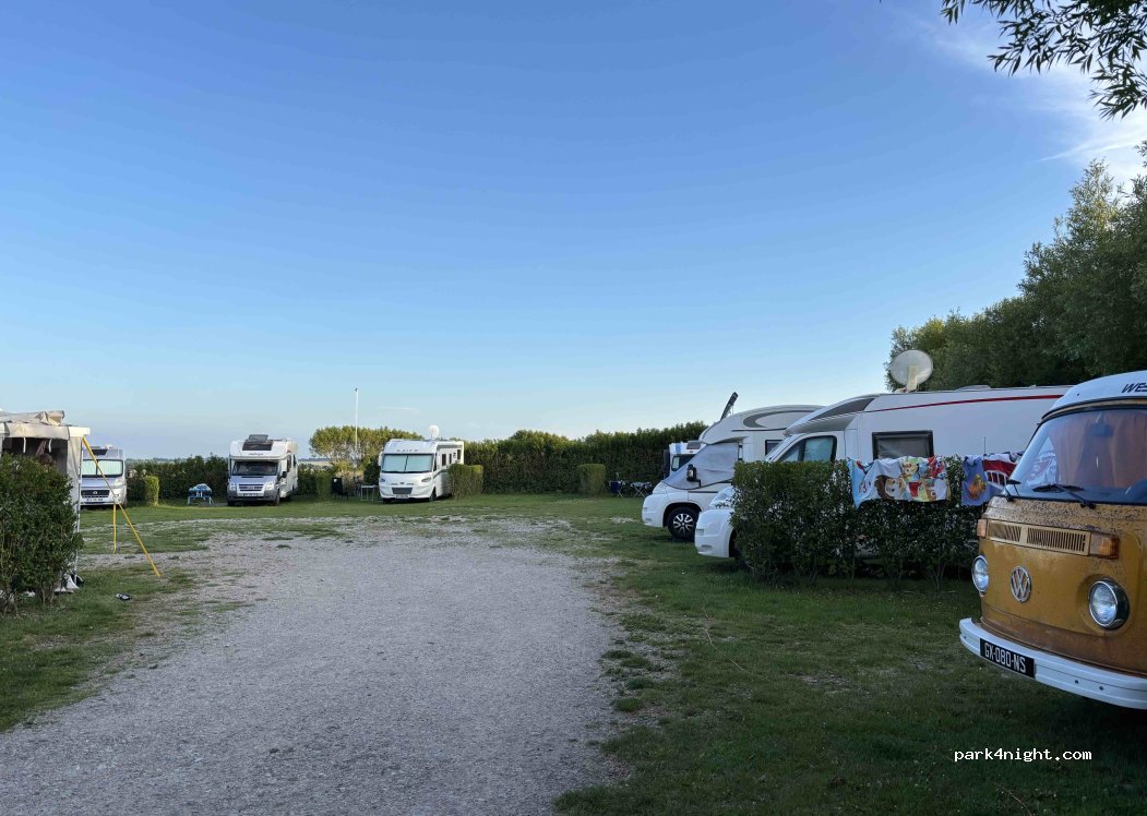 Emplacements pour camping car avec de l'herbe et délimités. accès à la piscine. Bar et dépôt de pain à l'entrée. accueil très agréable. le tout pour 15€. A recommander fortement.