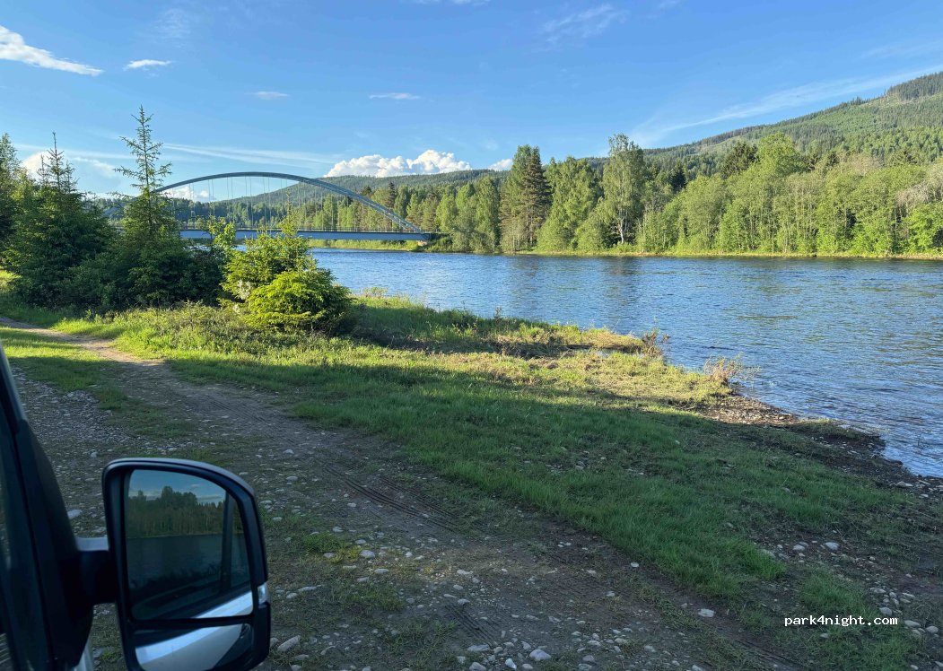 Genoeg ruimte voor meerdere campers. Toegang tot (snel stromend) water is makkelijk. Heel veel muggen!
