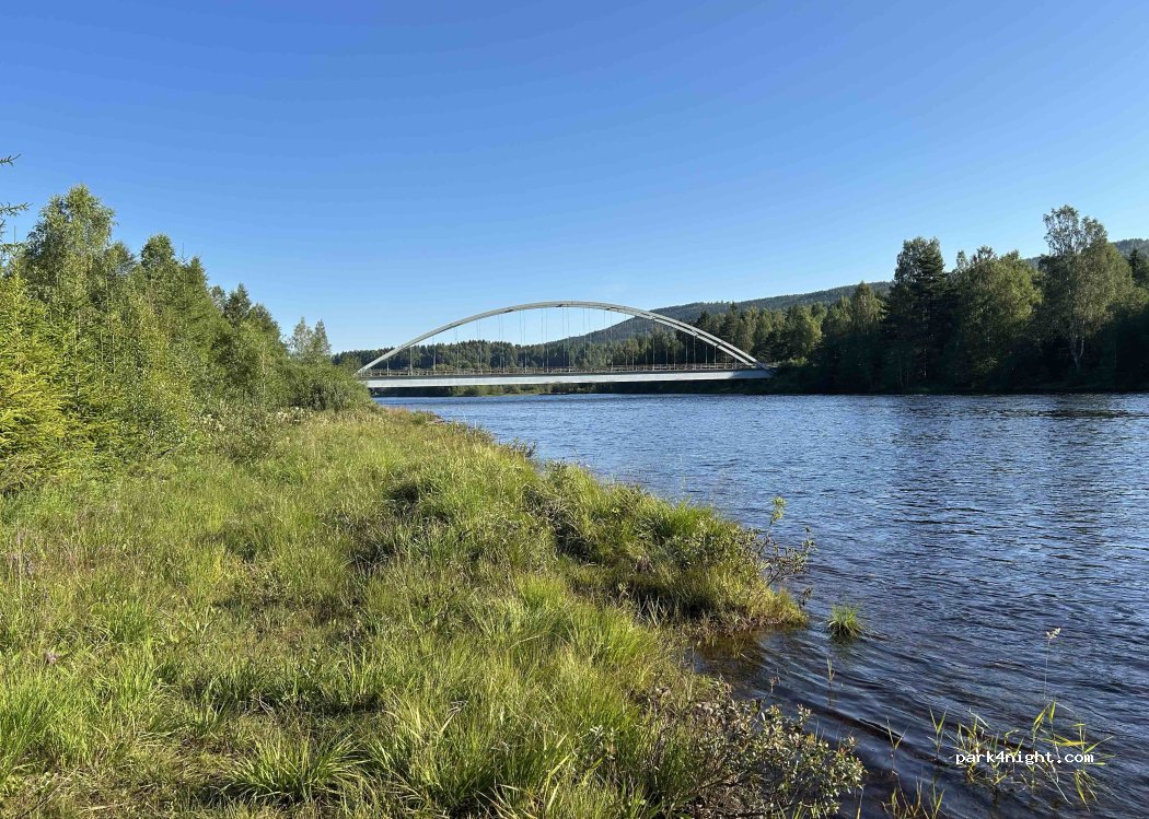 Ein wunderschöner Ort für 1-2 Tage ohne Ver- und Entsorgung, zentral gelegen in der Ortschaft. Direkt am Klaraelven und zu Fuss kann man bei Coop einkaufen oder in die Pizzeria, zum Bankautomat oder zur Tankstelle mit Imbiss!