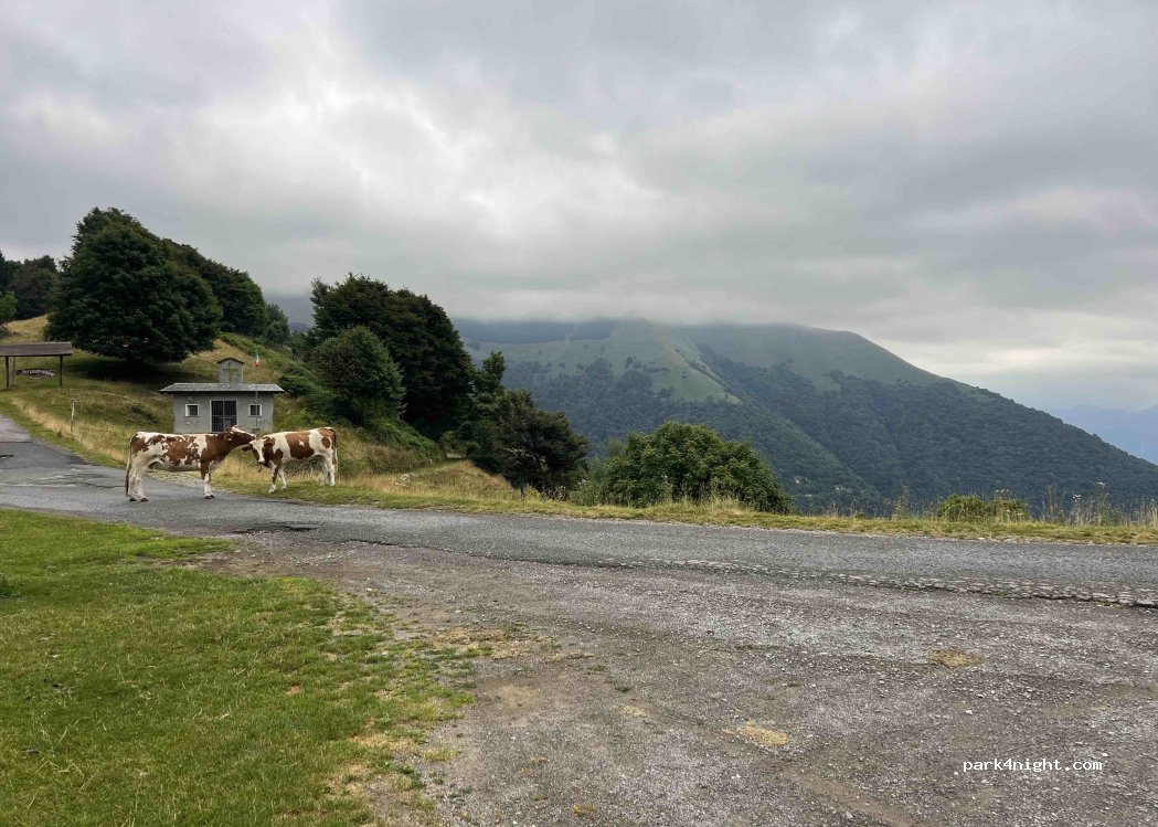 Parking très chouette avec une super vue des deux côtés. En pleine nature, très peu de passage si ce n’est quelques randonneurs le matin. Accès difficile! Mais la route en vaut le coup. Il y a une petite auberge à côté avec un bar (attention ils ne prennent pas la cb, on s’est fait avoir). Les vaches ont des cloches, cela peut déranger les personnes avec un sommeil léger, pas de soucis pour nous.