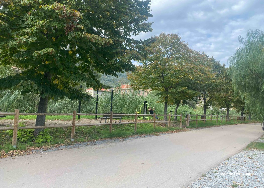buen lugar, muy bueno para los que llegamos a Italia de Francia, al lado de unas mesas, sillas y una zona de ejercicios :)