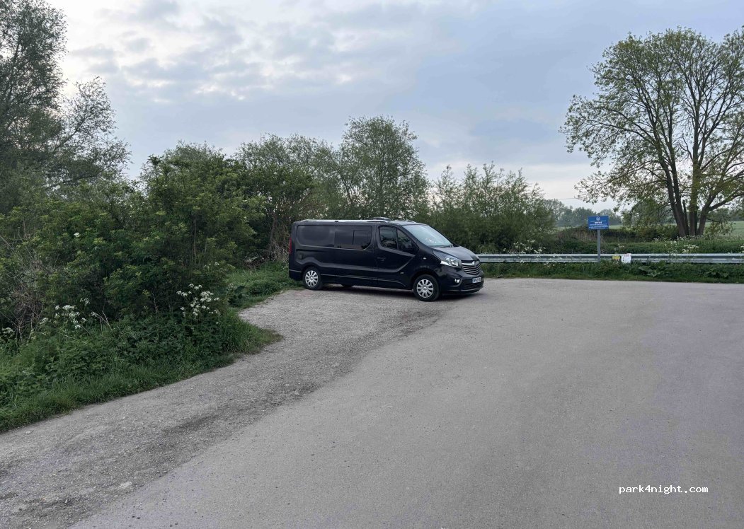Lovely view by the river, nice and quiet until about 7am with bicycles and dog walkers. Slight noise from the road overnight but hardly noticeable. No facilities. Nice place to stay.