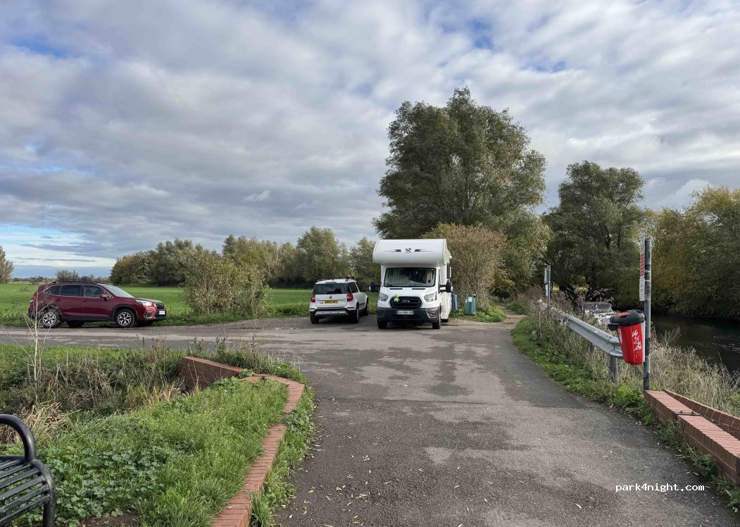 got here around 8pm and was the only vehicle here. We have a 6m moho and I wouldn't recommend anything larger. Its very peaceful overnight and in the morning only joggers and dog walkers. The view is pleasant and having two dogs it was nice to see the red bin aswell as the normal refuse bins.