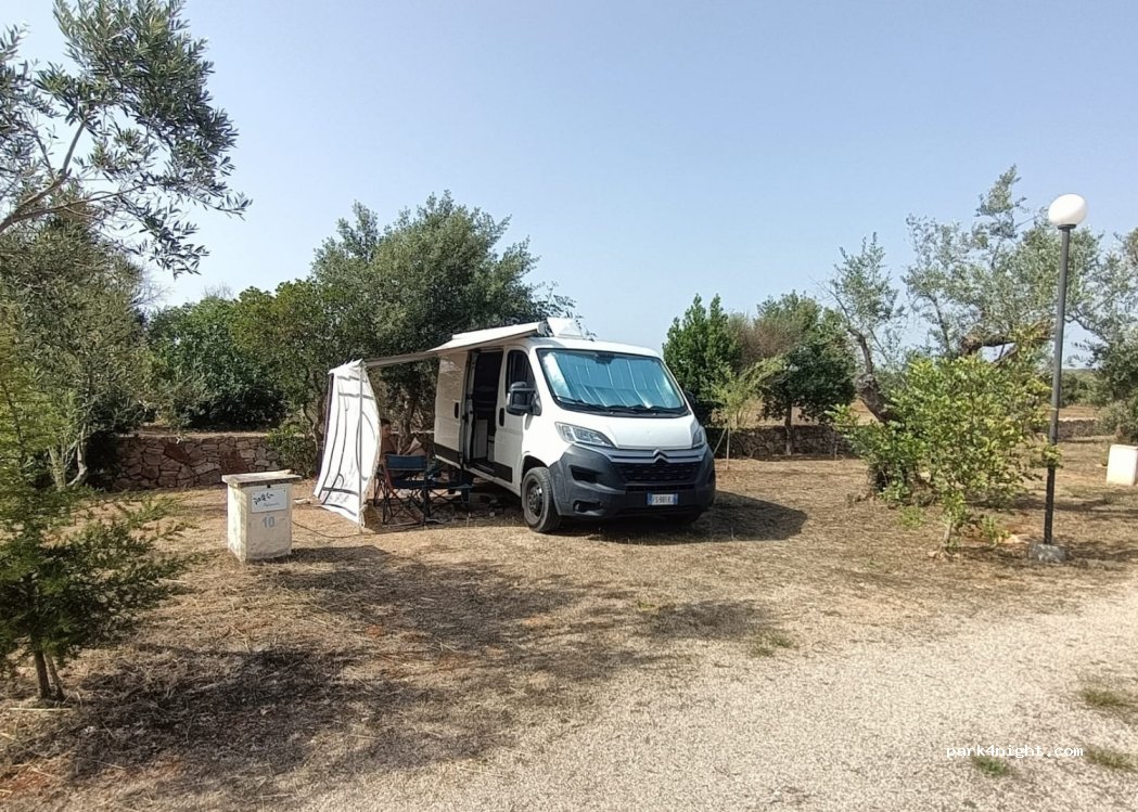 Endroit magique et préservé tenu par Giovanni, sa famille et ses amis. Douche chaude, WC, lavabo, potager, tri sélectif, proche du village de Torte Mozza mais en dehors de la foule des juillettistes et des aoûtiens. À recommander vivement. 20€ en juillet pour 2 adultes, 1 bébé et un camervan, 25€ en haute saison soit dès le 1 août. Souper typique délicieux, produit frais, bons conseils transmis, à 2.5K de la mer sur une petite colline. De loin notre coup de cœur sur les 3.5 semaines de road trip dans les Pouilles.