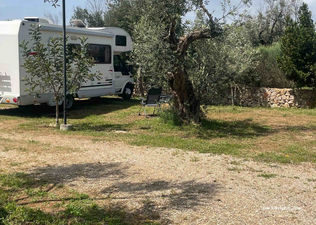 Der Platz liegt auf einem Hof mit Olivenbäumen. Der Platz ist gepflegt und einfach. Sanitärräume wie in Süditalien, einfach aber sauber. Strohm, Wasser, Grauwasser und Chemietoiletten Entsorgung vorhanden. Enrtfernung zum Meer ca. 2 km Ein Platz der Ruhe und Entspannung bietet. Zur Durchreise oder Kurzaufenthalt super geeignet. Betreiber recht freundlich. Wir bezahlten 25€ die Nacht.