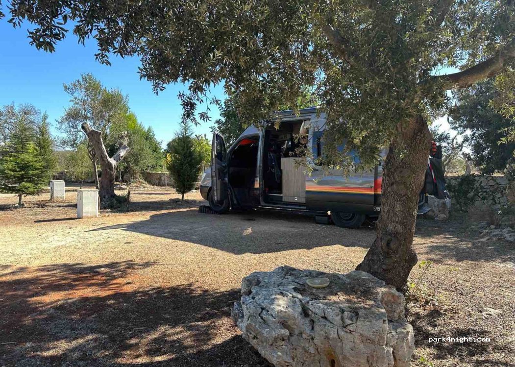 Had a great night, our dog loved it. nice quiet location, the shower was cold, but we fully recharged the van, since there aren't a lot of free options in puglia. in December, 2 per. with van and electric, 10€ bought some nice olive paste
