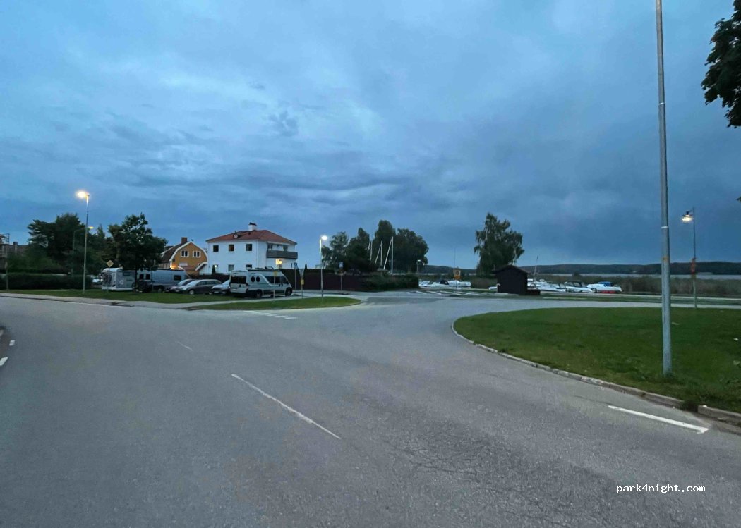 This is a simple parking lot with no services, and with 72 hour parking alowed. We stayed there for one night, which was great. It is a peaceful area by the lake. It is beside one of the main roads, so traffic should be expected. The public toilet facilities in Mariefred were limited - some were permanently closed. We managed to find a toilet, though, which had limited opening hours.