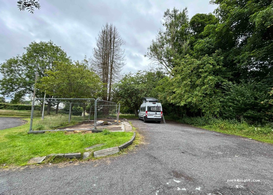 Great little parking spot, 5 minute walk to town along the river, 5 mins walk to the Birnam Oak too. In a housing estate so not private or secluded but locals friendly. It isn’t deathly quiet as a consequence of its location but a lot nicer than the public car park in town, especially with a big van. If you park on the concrete hard standing it does not impede access to the bottle banks.