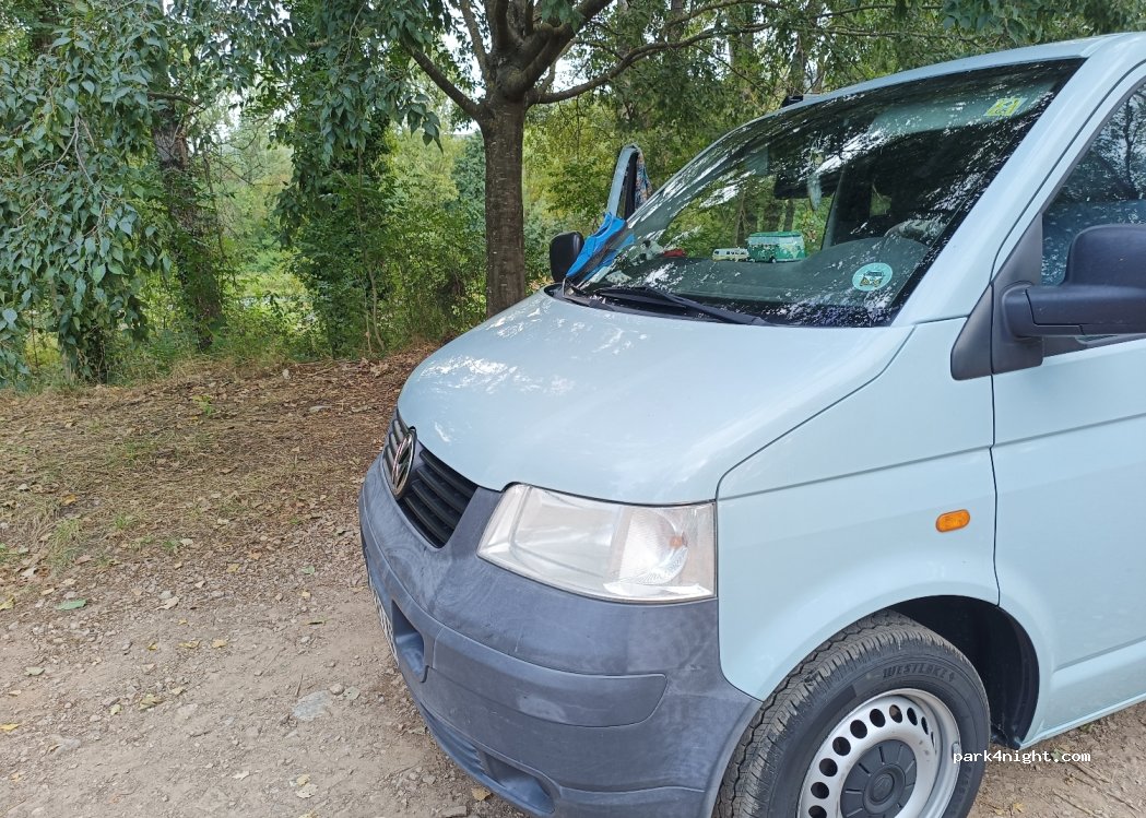 spot simple à trouver, barre de 2.10 mètre à l entrée donc convient pour petit fourgon. rivière juste à côté, un peu de passage piéton le matin mais pas gênant !
