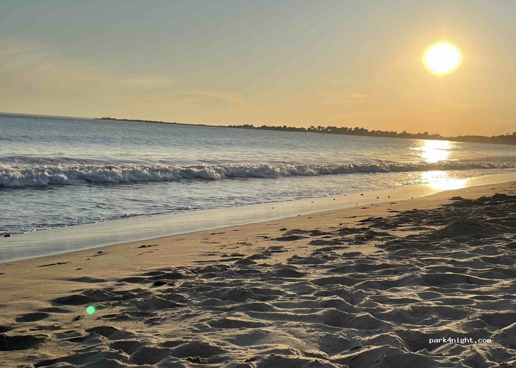Accueil très sympathique, petit camping, calme, proche océan à pied, très belle plage de sable fin. Sanitaires très propres. Emplacements spacieux. Au centre de l'île possibilité de tout visiter à vélo sans bouger le camping-car, piste cyclable à la sortie du camping