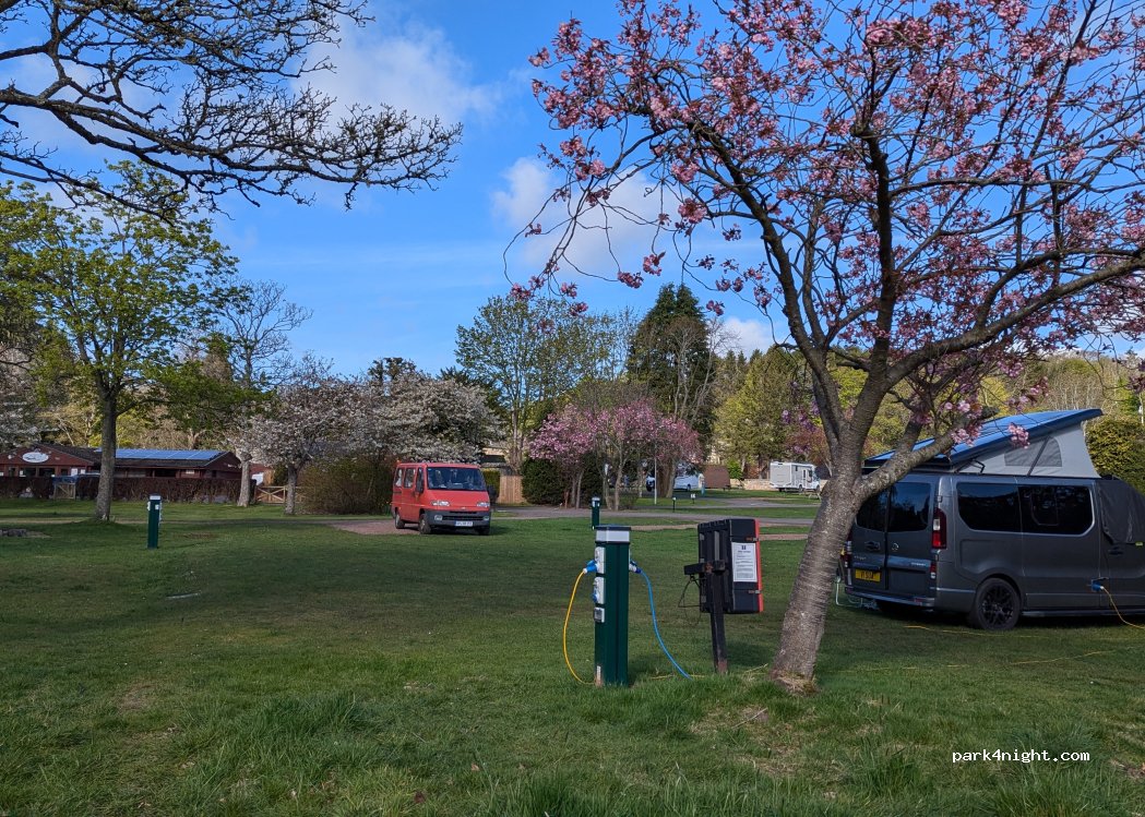 Clean,well maintained,disabled access facilities excellent,TV leisure area,kitchen,hot and cold water included,but cooking facilities extra (1£ 15 minutes),no free Wi-Fi. Idyllic natural surroundings.