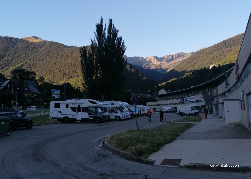 No aparcar delante del Cash and Carry. Los gerentes y trabajadores no quieren autocaravanas. Cogen las furgonetas y te encierran por los lados para no poder entrar ni salir de la autocaravanas. Por lo visto en Vielha no quieren autocaravanas. Dicen que no gastamos ni consumimos. Por supuesto que en este sitio no lo aconsejo. Llaman a los mossos. Nosotros solamente aparcamos para comer y seguir.